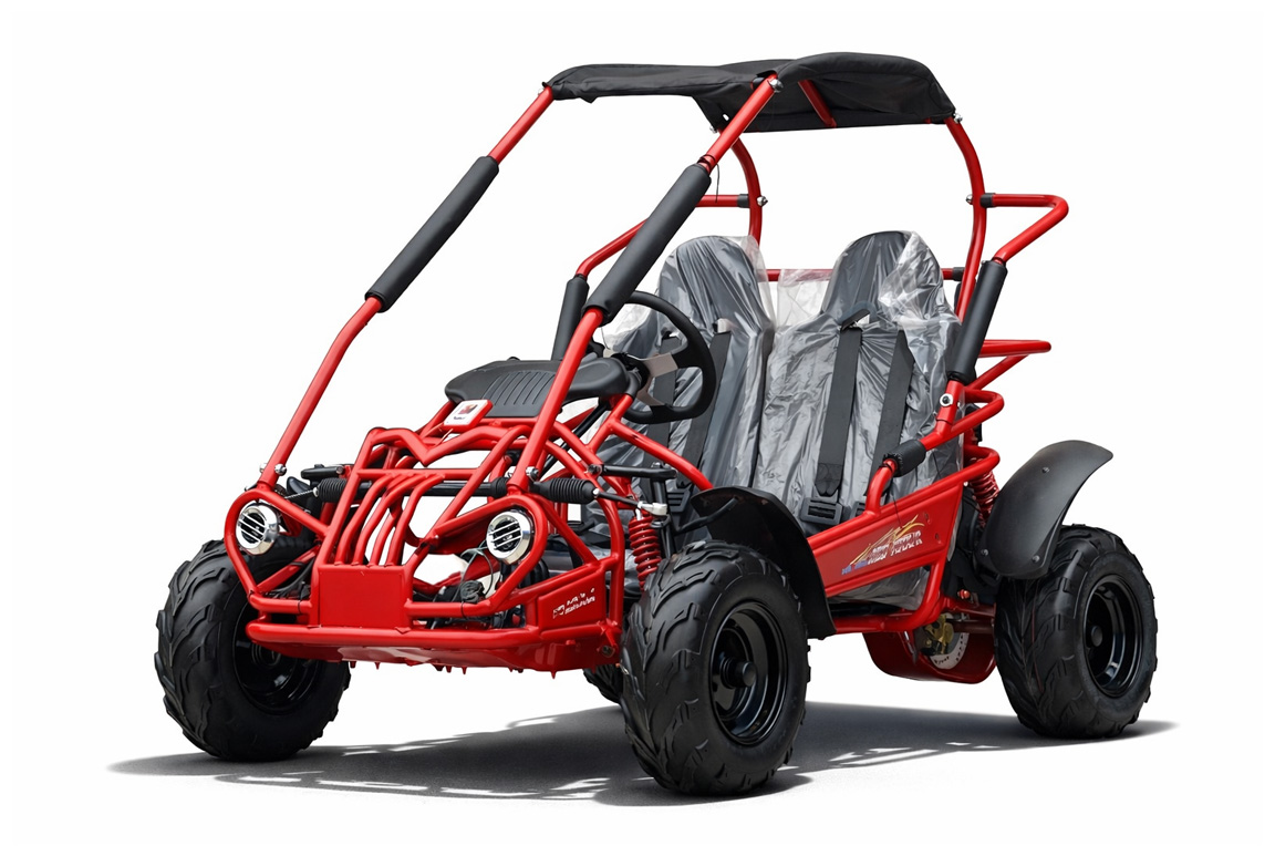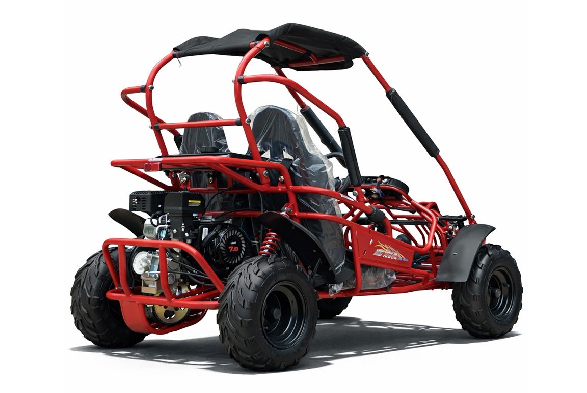 Denne Hammerhead GT80 Buggy Gokart er en af de mest populære på markedet i USA og England, og den er nu også tilgængelig for jer der ikke kan få adrenalinkicks nok. Med to sæder og stærke firepunkts sikkerhedsseler kan både unge og voksne køre sikkert og komfortabelt, selv i udfordrende terræn. Buggy’ens 212cc 4-takt luftkølet motor med en topfart på 50 km/t giver en kraftfuld køreoplevelse, og den automatiske CVT-kobling sikrer glidende overgange og nem håndtering i alle hastigheder.