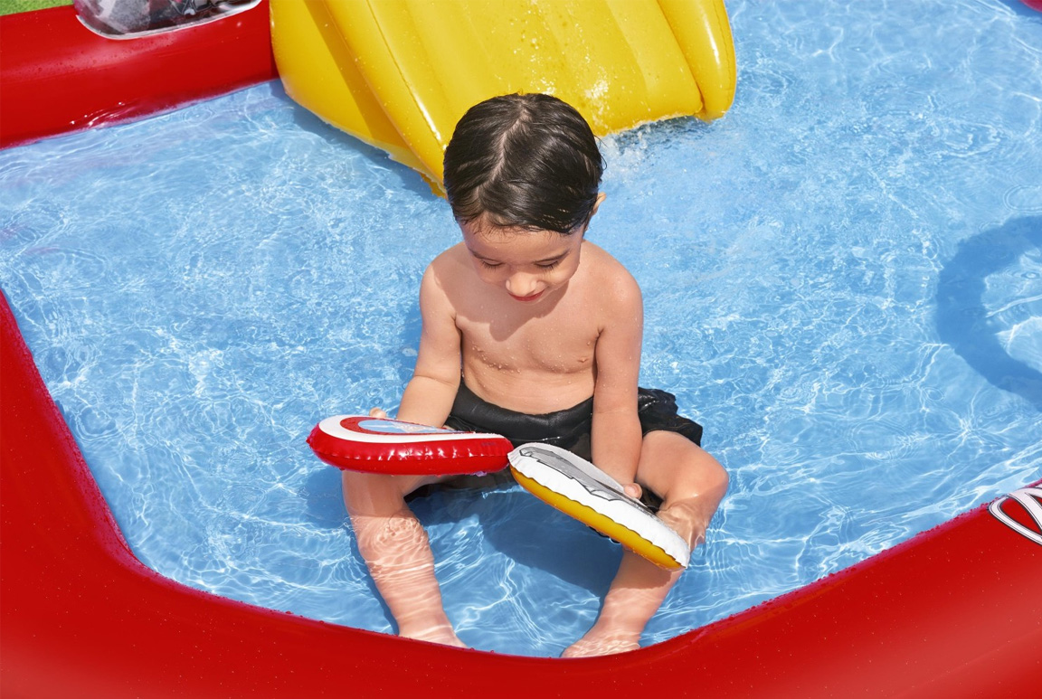 Det bedste? Avengers-vandlandet kan bruges både med og uden vand. Når solen ikke er med dig, eller stuen trænger til lidt heltestemning, kan hele centeret pustes op indendørs og forvandle ethvert rum til en Marvel-legeplads fyldt med action. Det gør det til en allround favorit – uanset årstid eller vejr.