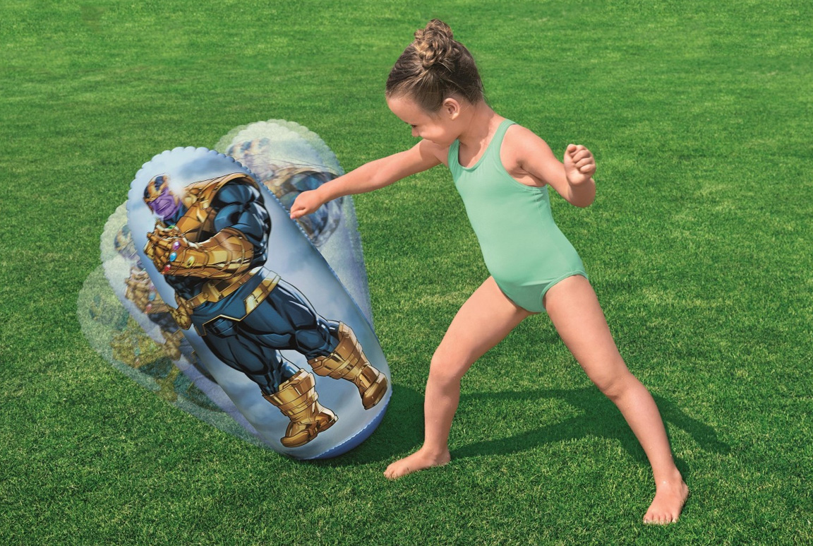 Men det stopper ikke ved vandsjov. Med i pakken får du to oppustelige Avengers-skiver, som fungerer perfekt til kastespil gennem det seje ringmål. En blanding af præcision, heltemod og sjovt konkurrenceinstinkt får børnene til at føle sig som ægte forsvarere af Jorden. Og som prikken over i’et: Thanos selv står klar – i form af en oppustelig boksebold, der inviterer til en omgang superhelteboksning. Perfekt til at få afløb for energien og give “The Mad Titan” en kærlig (men bestemt) omgang tæsk.