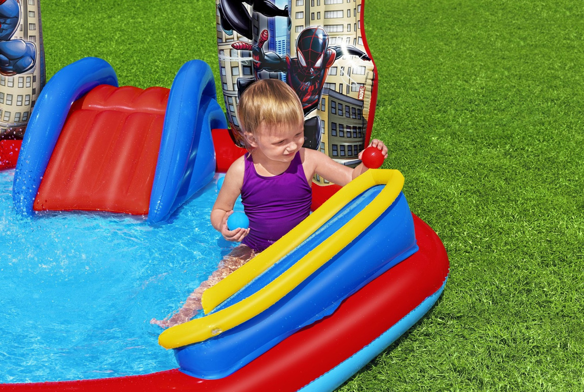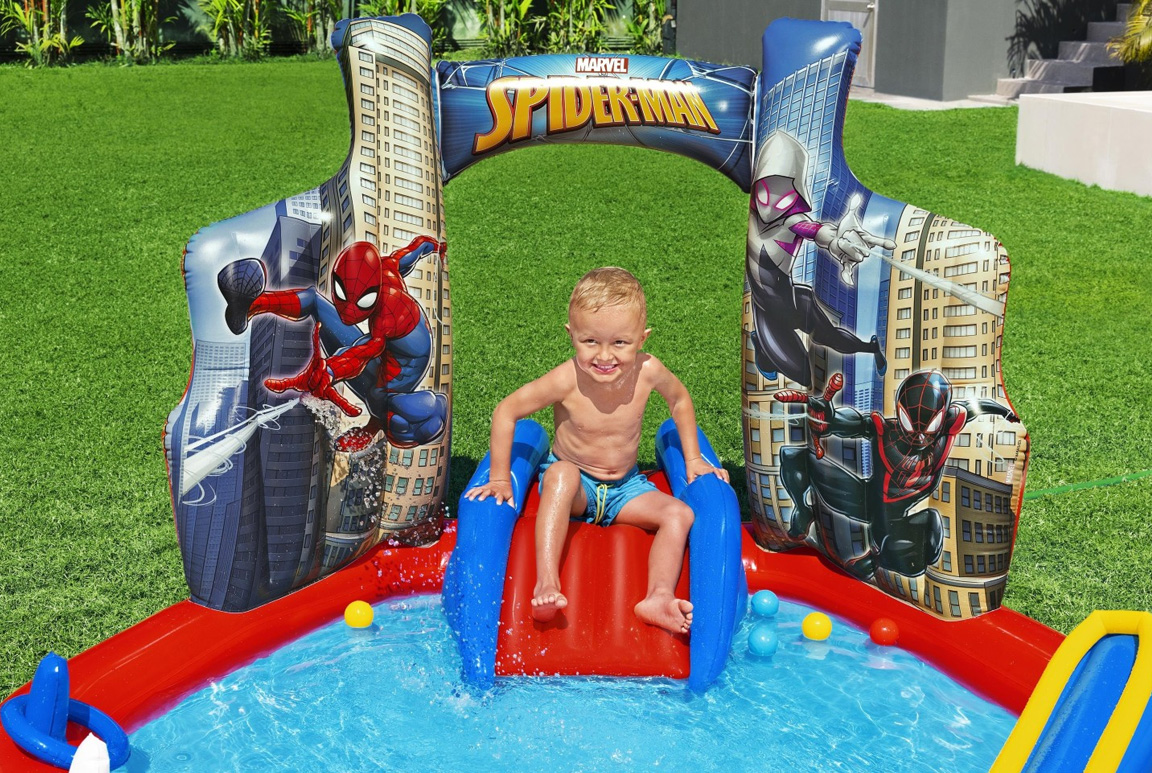 Er der en lille superhelt gemt i dit barn? Så er det tid til at invitere selveste Spiderman ind i haven – og han kommer ikke alene! Med det oppustelige Bestway Spiderman Vandland får børn fra 2 år og op deres helt egen actionfyldte legeplads, fyldt med plask, sjov og superhelteøvelser, der vil få enhver lille Spidey- eller Marvel-fan til at juble.