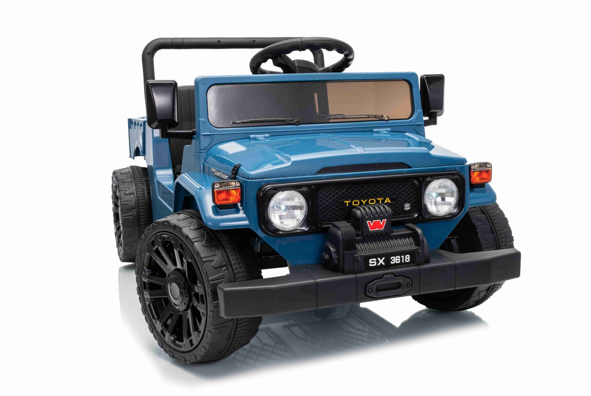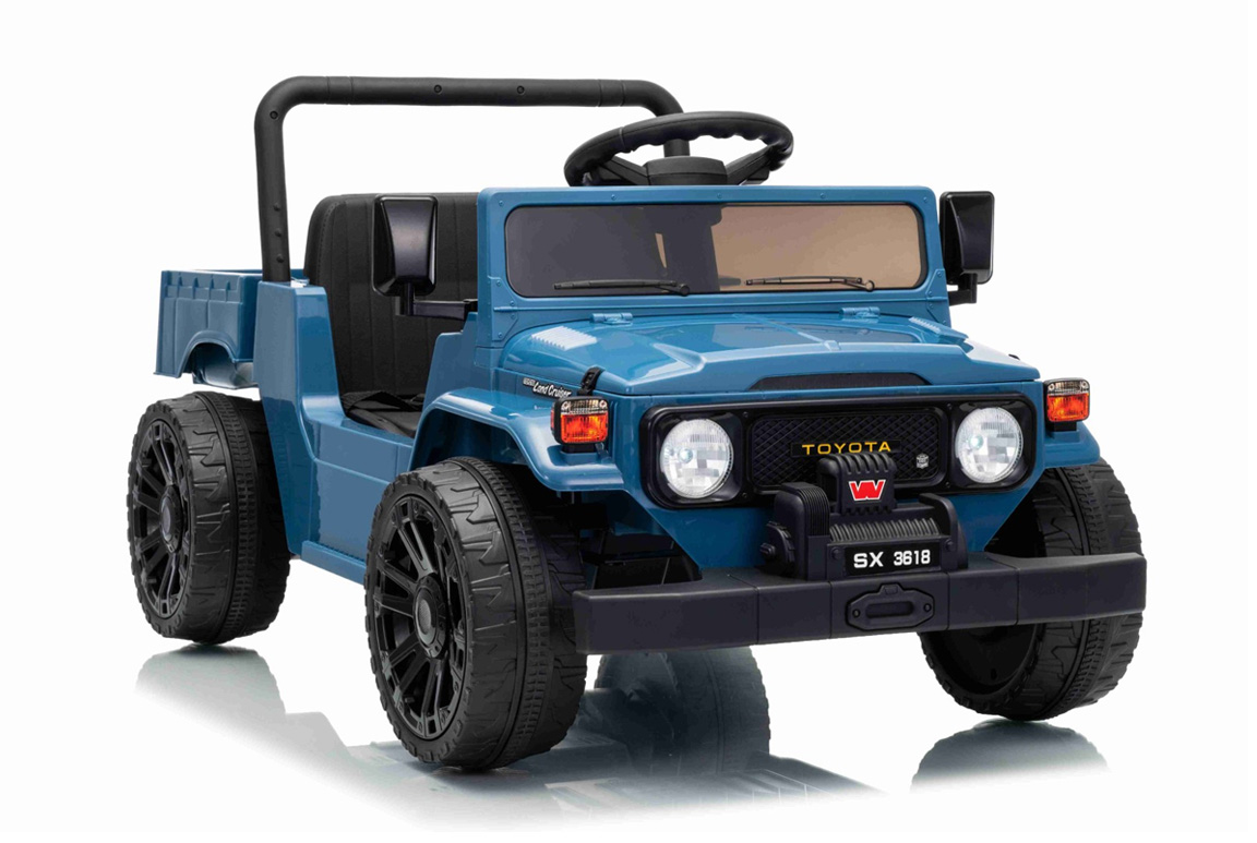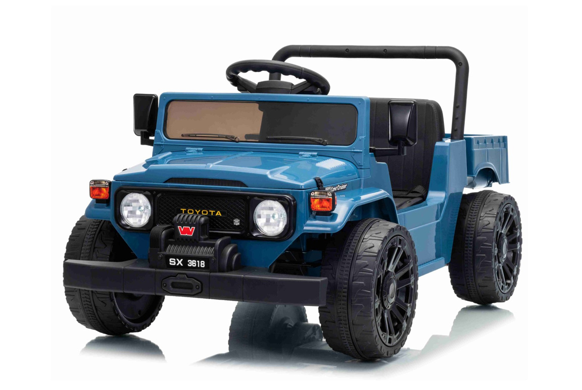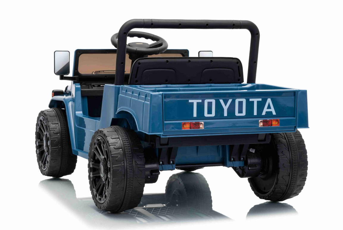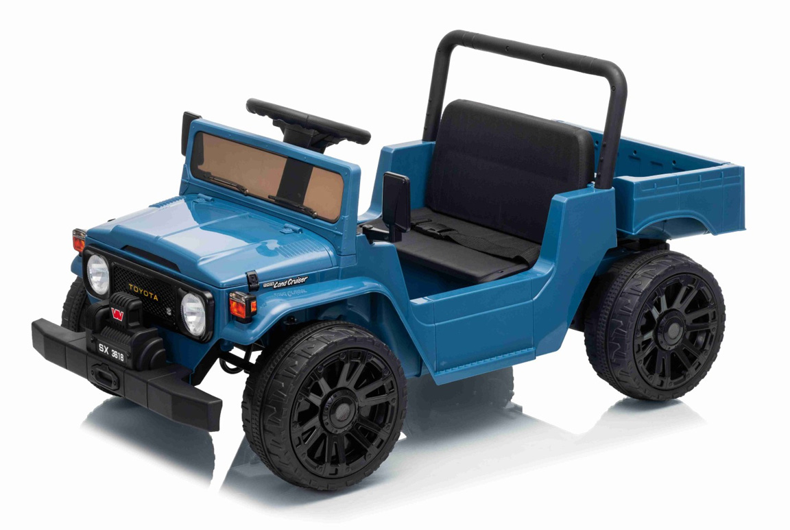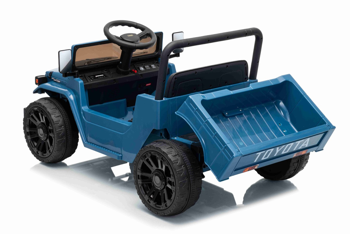Toyota Land Cruiser FJ45 Pickup med elektrisk lad er en licenseret elbil til børn, hvor der er kælet for detaljerne, så både udseende og funktioner føles realistiske. Designet er tydeligt inspireret af den klassiske pickup-form, og det elektrisk dumpbare lad gør legen mere levende. Her kan dit barn fragte legetøj, grene, sand eller dagens store byggeprojekt – og med et tryk kan ladet tippes, præcis som på en rigtig arbejdsbil. Det er netop sådanne funktioner, der gør, at legen holder længere og bliver ved med at udvikle sig.