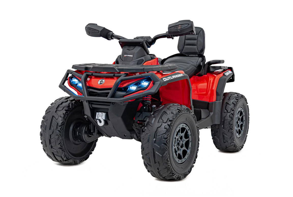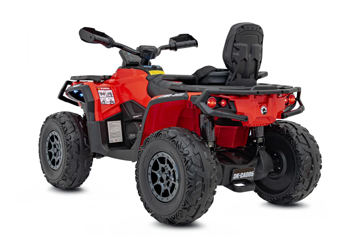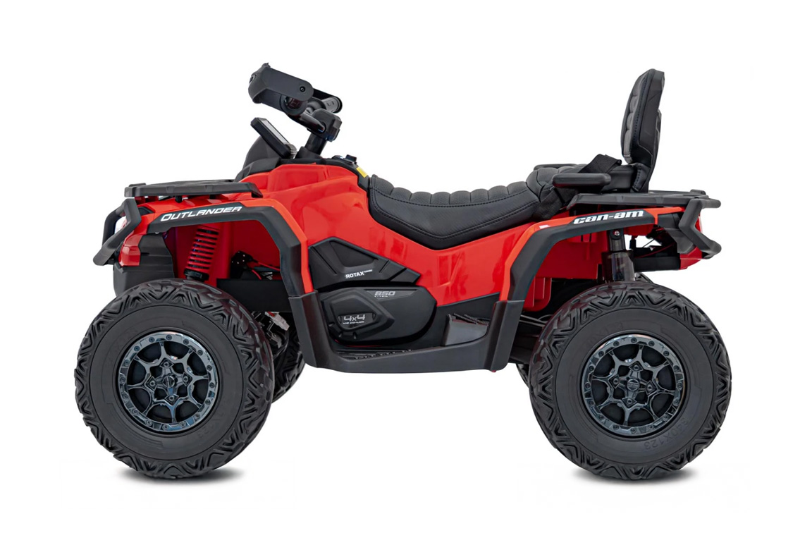 Forestil dig dette: Det er søndag formiddag, fuglene synger, og dit barn har lige spændt sikkerhedsselen i sin helt egen elektriske Can-Am Outlander Mini ATV. Med et tryk på startknappen summer de fire 24V 200W motorer i gang og LED-lygterne tænder som på en ægte offroader! Denne elektriske ATV er selvfølgelig lavet på original licens fra Canadiske Can-Am. Er ungerne ikke alt for store i slaget, kan de sagtens klemme sig sammen – to på tur, dobbelt så meget ballade!