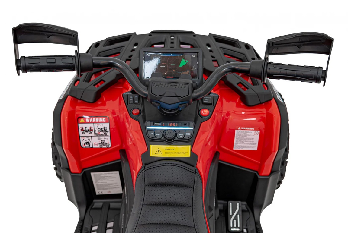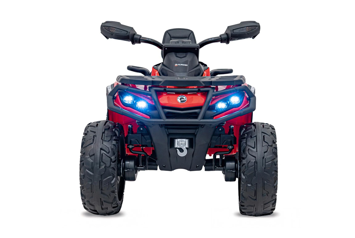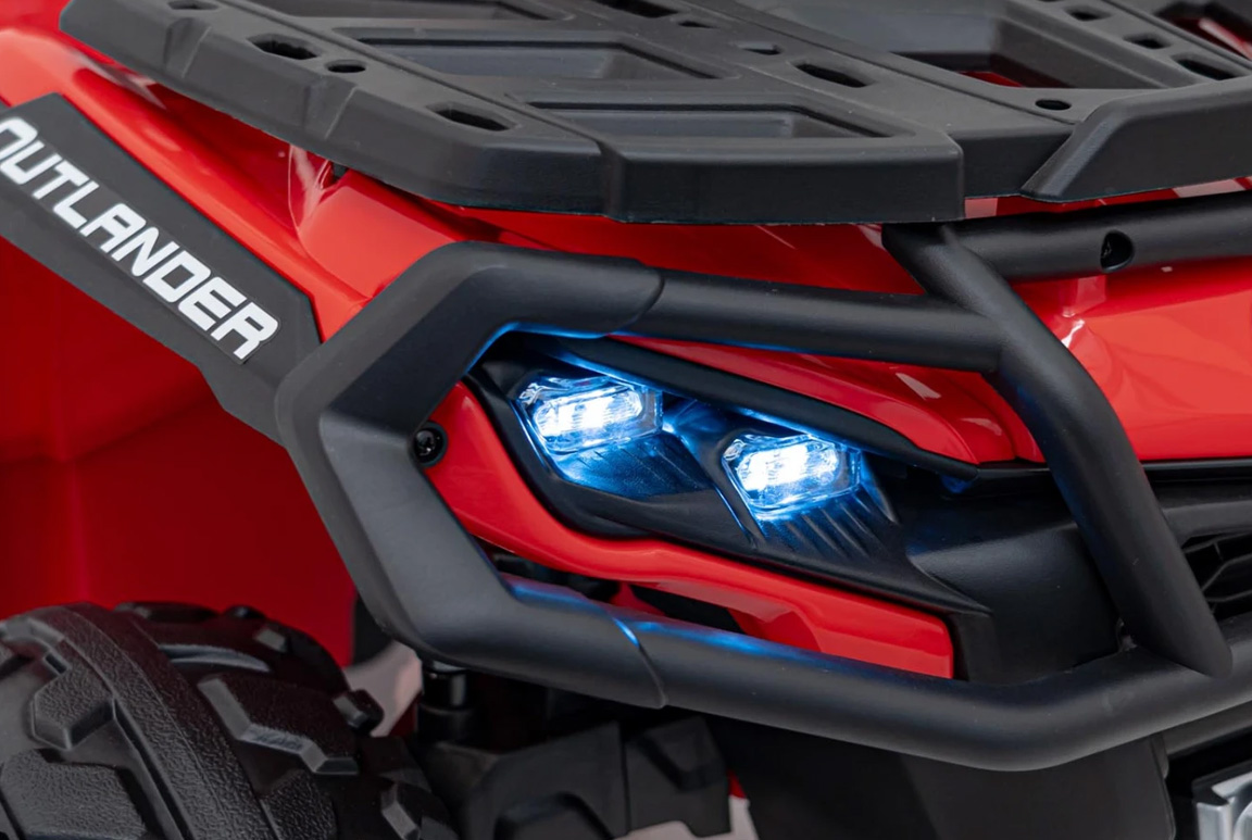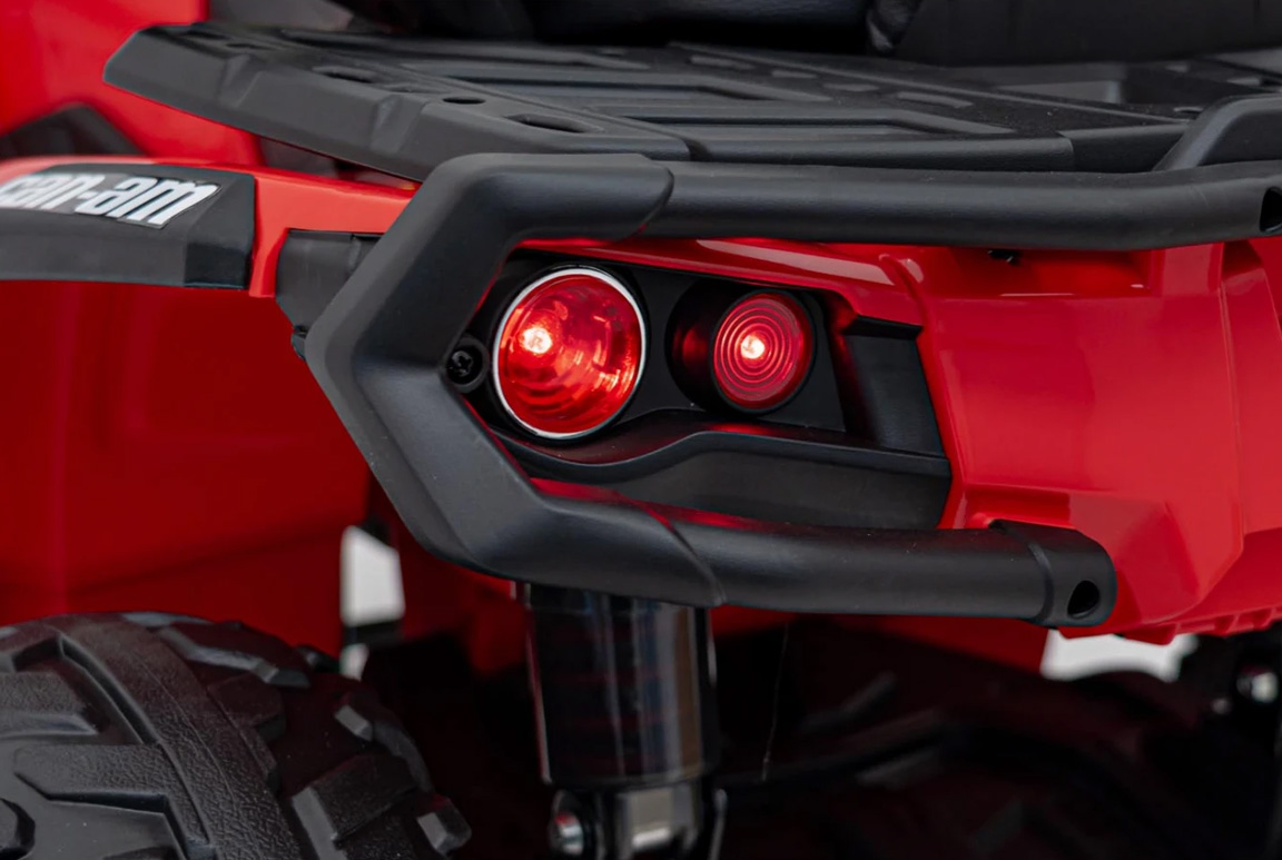 Med et kraftigt 24V/7Ah batteri og 4×4 (motor på alle hjul) er der ikke meget, der kan holde denne røde Can-Am Outlander ATV tilbage. Med de to forskellige fremadgående gear, har barnet mulighed for at tilpasse hastigheden efter enhver eventyrlysten sjæl. Og med den indbyggede soft-start funktion accelererer ATV’en forsigtigt frem til at starte med, så nakken ikke udsættes for kraftige stød! Deruover har den også et bakgear, så mor og far slipper for at trække guldklumpen fri hele tiden.