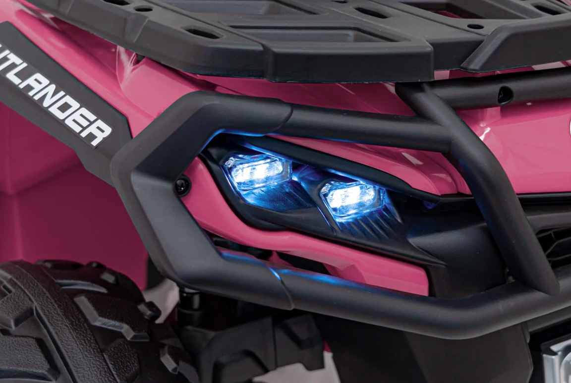 Forestil dig dette: Det er søndag formiddag, fuglene synger, og dit barn har lige spændt sikkerhedsselen i sin helt egen elektriske Can-Am Outlander Mini ATV. Med et tryk på startknappen summer de fire 24V 200W motorer i gang og LED-lygterne tænder som på en ægte offroader! Denne elektriske ATV er selvfølgelig lavet på original licens fra Canadiske Can-Am. Er ungerne ikke alt for store i slaget, kan de sagtens klemme sig sammen – to på tur, dobbelt så meget ballade!