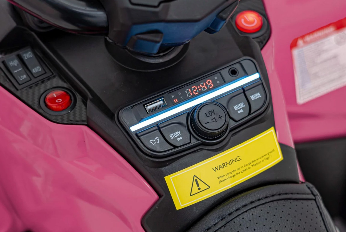 Hvem siger, at det kun er voksne, der kan køre med stil? Med vores seje Can-Am Outlander Mini ATV bliver dine børns legeaftaler forvandlet til mini-roadtrips med ren koncertstemning. Her er der ikke sparet på noget, for ATV’en kommer nemlig med et indbygget musikanlæg, der kunne gøre enhver DJ misundelig. Med både Bluetooth, FM-radio, AUX og USB, er der altid adgang til yndlingsplaylisten – uanset om det er babyshark, børnerock eller børnepodcast. Alt sammen pakket ind i et cockpit, hvor dit barn sidder som en stjerne.