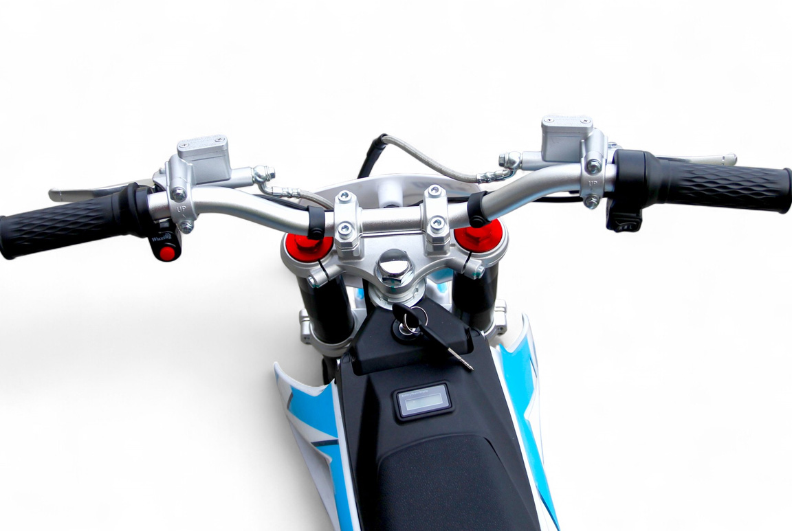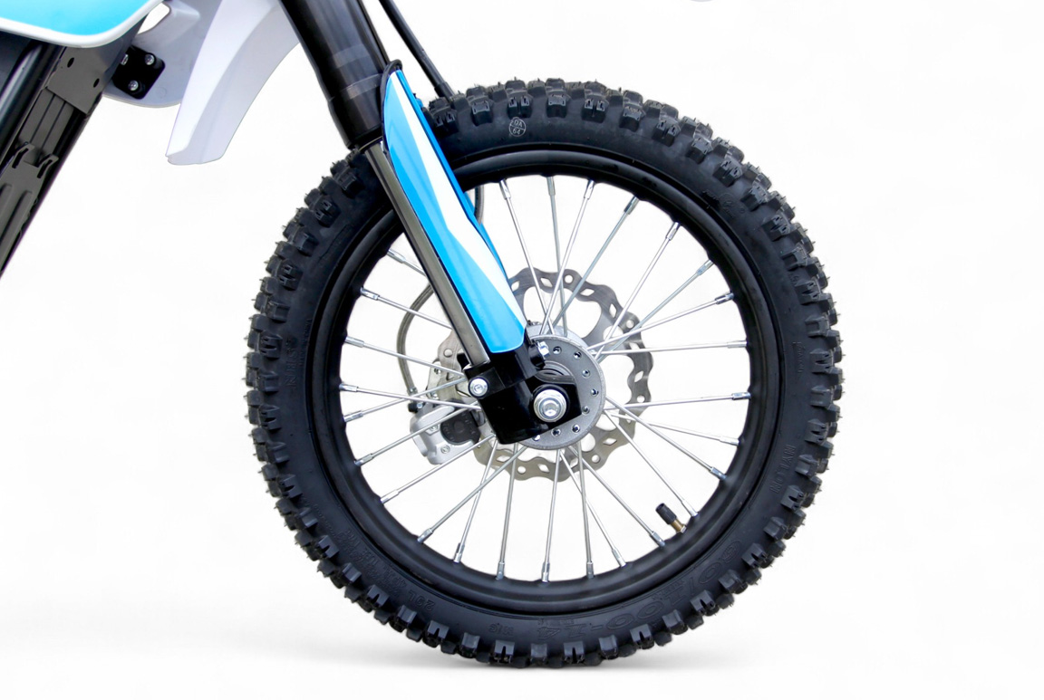 Klassens stærkeste elektriske dirtbike – med hydrauliske skivebremser, kraftig 2500W peak-motor, seriøs affjedring og fart nok til at efterlade konkurrenterne i støvet.