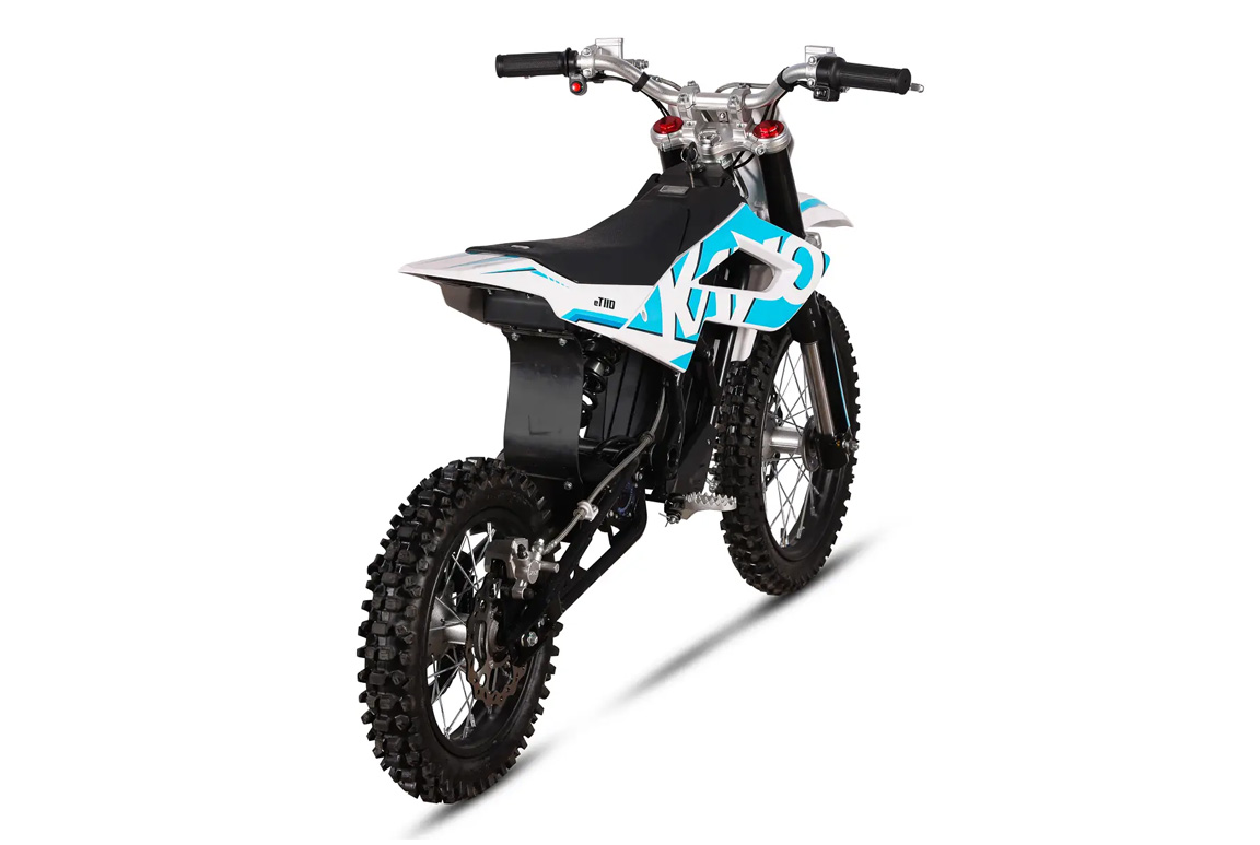 Kayo eKMB får sin kraft fra en moderne 57,6V lithium-batteripakke på hele 17,85Ah, som leverer stabil energi til den kraftige brushless motor. I praksis betyder det, at motoren ikke bare får en jævn og rolig strøm af kraft – den får også en langt mere effektiv udnyttelse af energien end traditionelle blybatterier. Lithium-batteriet sikrer, at dirtbiken reagerer hurtigt, accelererer jævnt og giver barnet en kontrolleret og tryg køreoplevelse. Samtidig holder lithium-teknologien vægten nede, hvilket gør eT110 lettere at håndtere.