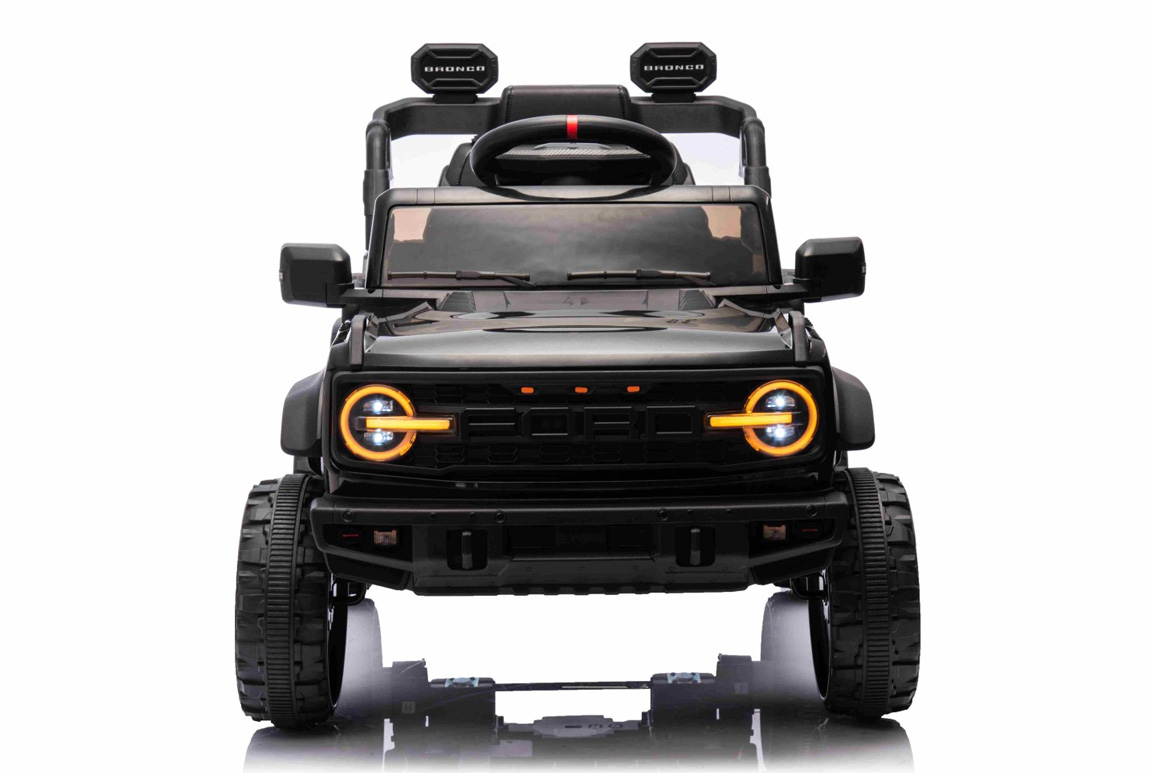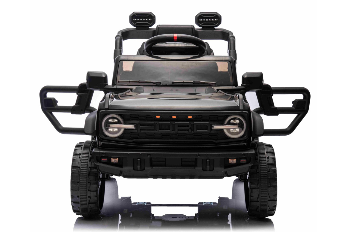 Denne Ford Bronco Raptor elbil til børn er ikke bare en legetøjsbil. Det er en mini-offroader med seriøse specifikationer, bygget til børn, der ikke bare vil køre rundt – men vil køre rigtigt. Designet er inspireret direkte af den voksne Bronco Raptor og følelsen er den samme: høj, bred, robust og klar til terræn. Forskellen? Den kører 4-5 km/t, og den største risiko er, at dit barn nægter at stå af igen. Modellen er selvfølgelig produceret på original licens fra Ford Motor Company.