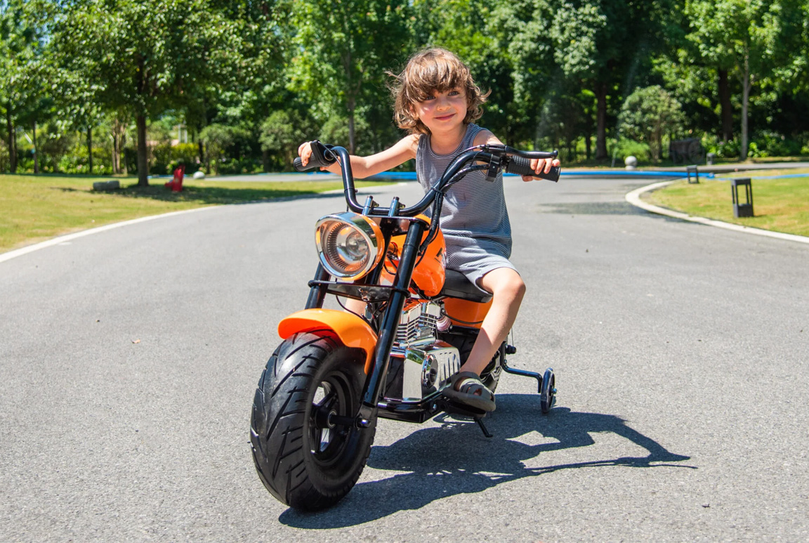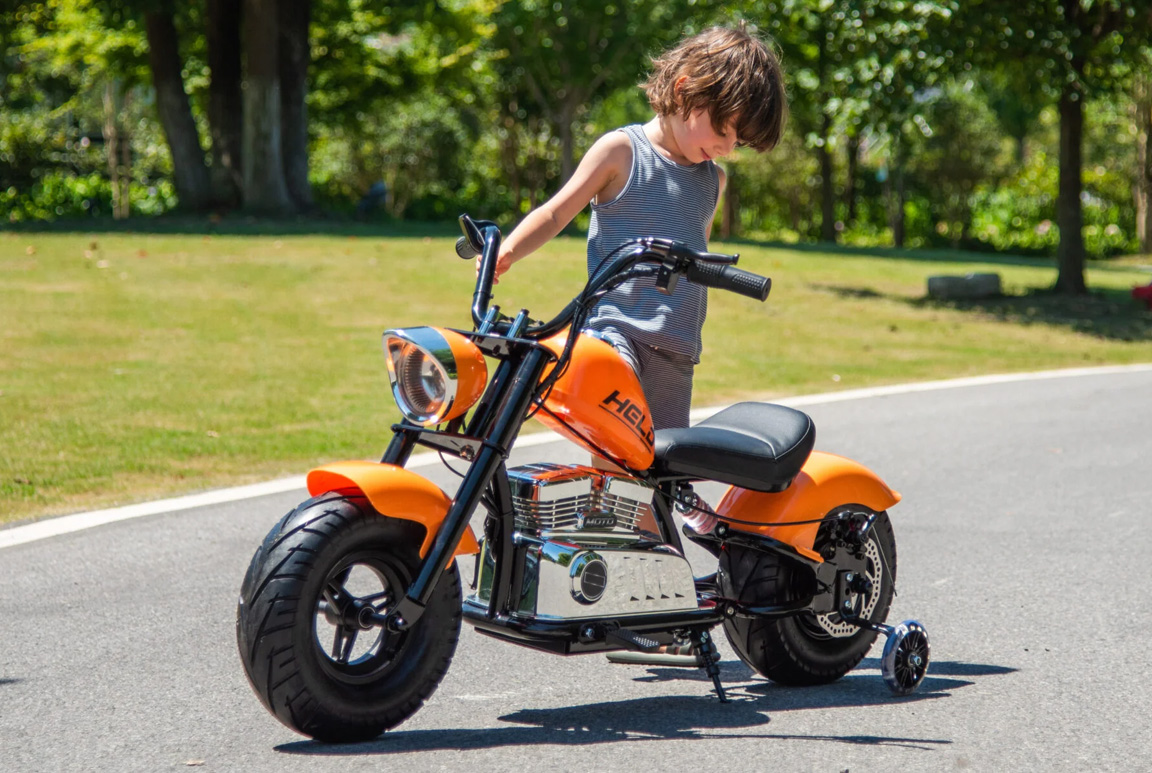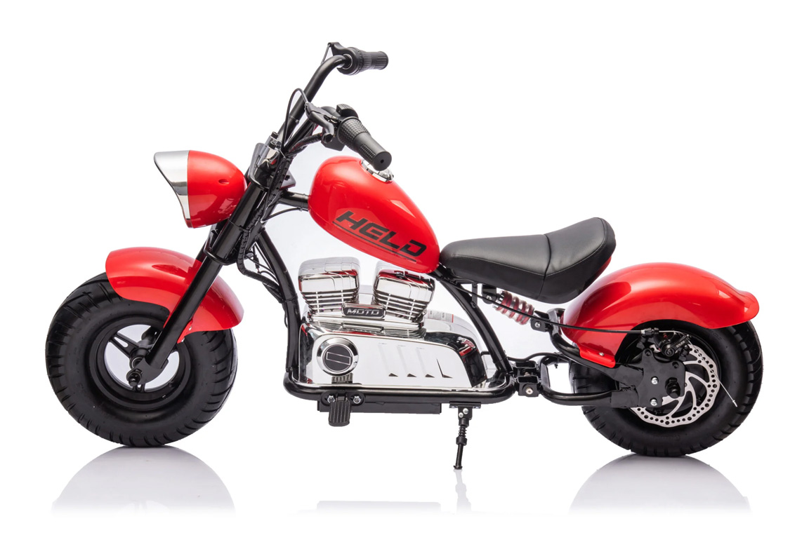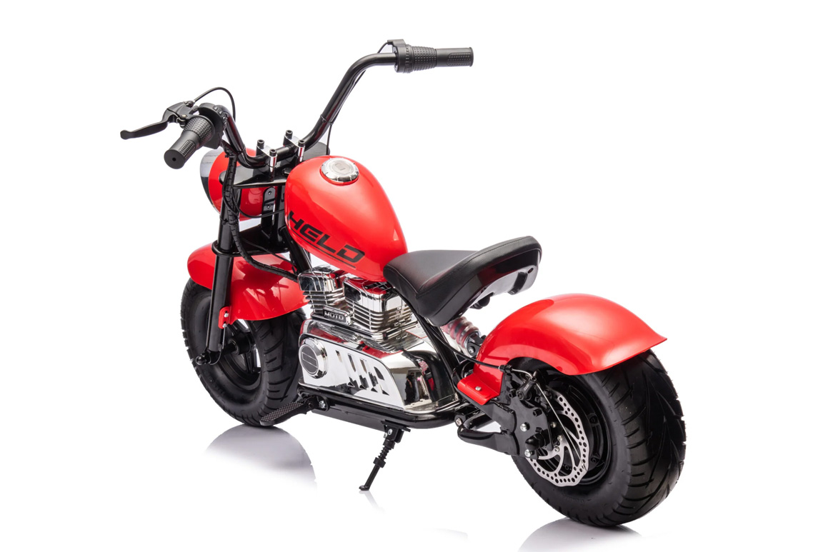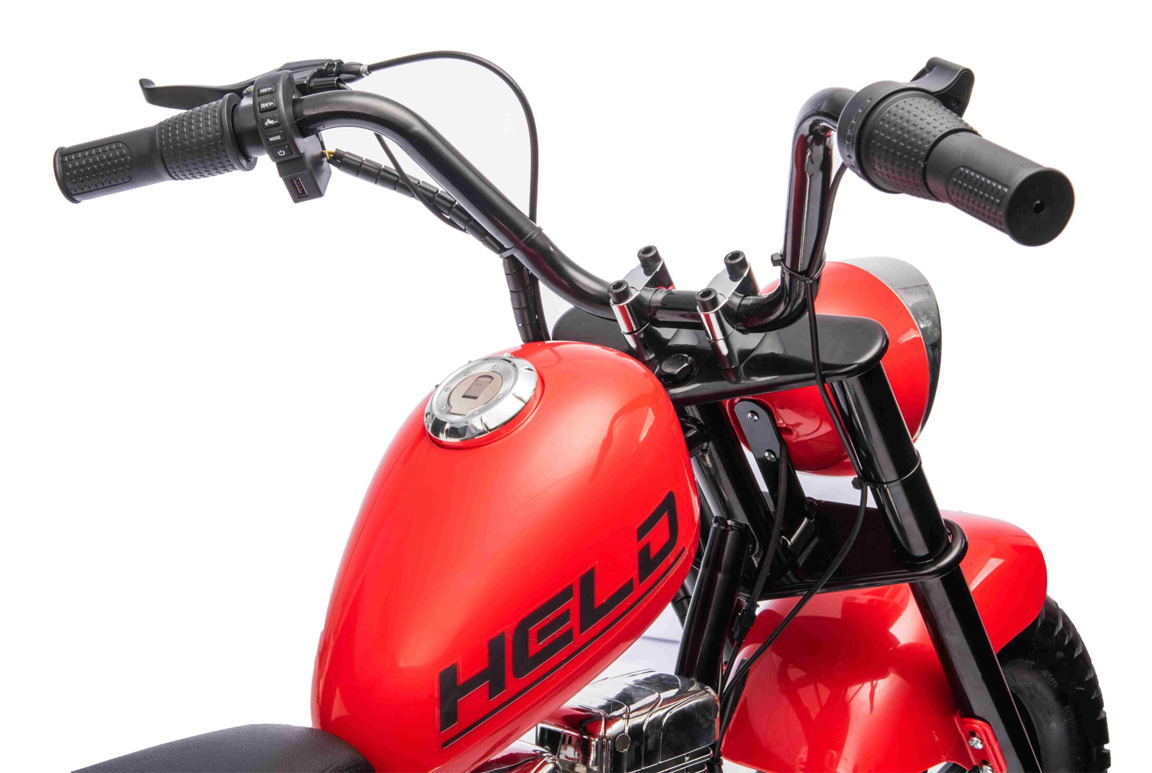 Leder du efter noget helt særligt til den lille motorentusiast? Så behøver du ikke lede længere. HELD Blackstrike Warrior Chopper er en ægte Chopper i miniformat, skabt til børn og barnlige sjæle, der nægter at blive voksne. Designet som en klassisk chopper – med brede dæk, lavt lædersæde og realistiske detaljer – får den både børn og voksne til at vende sig om. Den kan bære op til 80 kg, så ja – den er ikke kun for de små! (testet med +90 kg uden problemer).