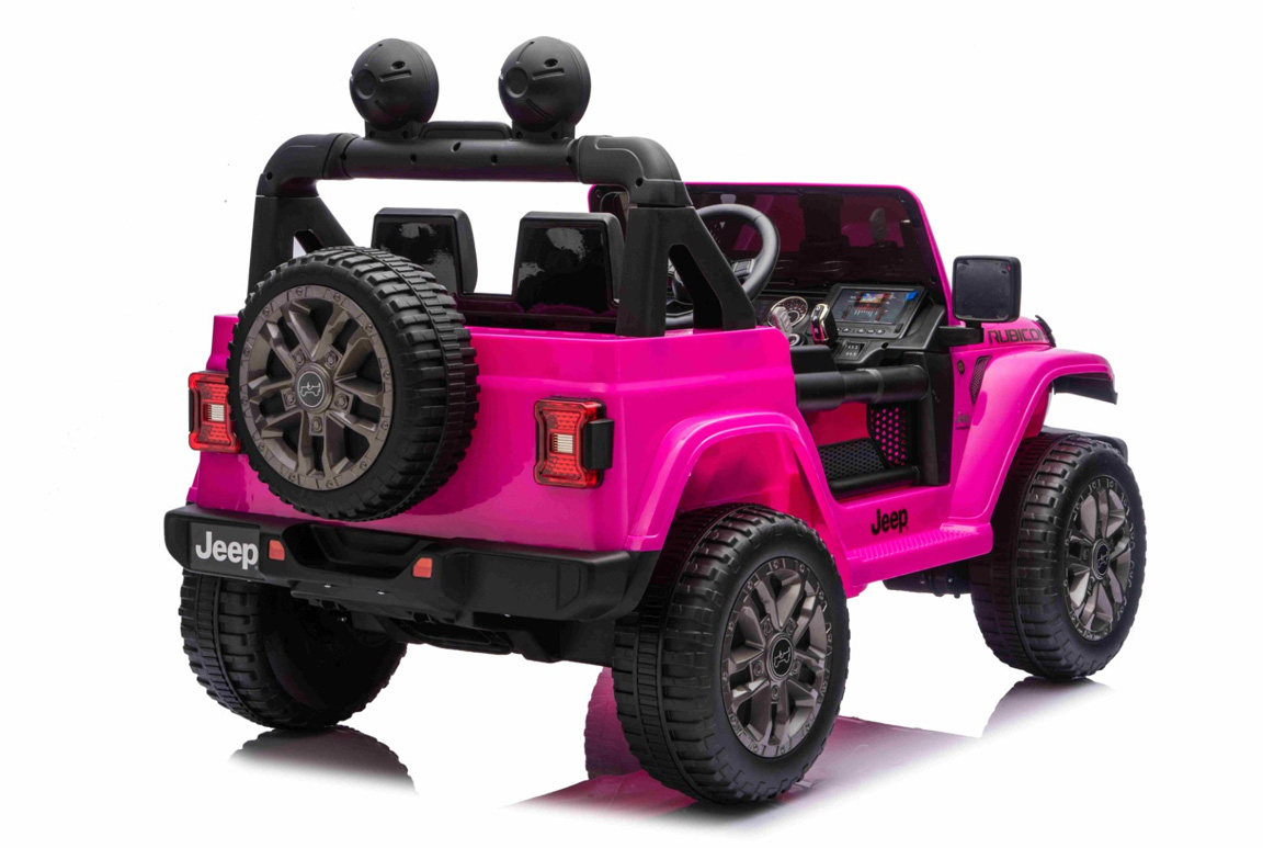 Denne pink Jeep Wrangler Rubicon elbil til børn er det oplagte valg for familier, der vil have det ypperste inden for børne-offroadere. Mere power, bedre batteri, ægte 4WD og kompromisløs køreglæde.
