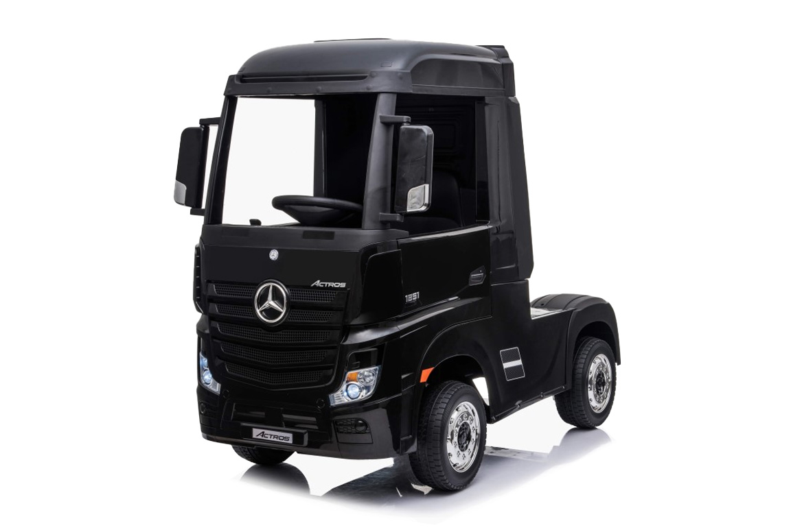Har du en lille lastbilentusiast derhjemme, som ikke kan få nok af store maskiner og lange landeveje? Så er denne sorte Mercedes Actros el-lastbil til børn det perfekte valg! Nu kan dit barn endelig følge i mors eller fars fodspor og starte karrieren som lastbilchauffør tidligt – lige fra baghaven til den store indkørsel.
