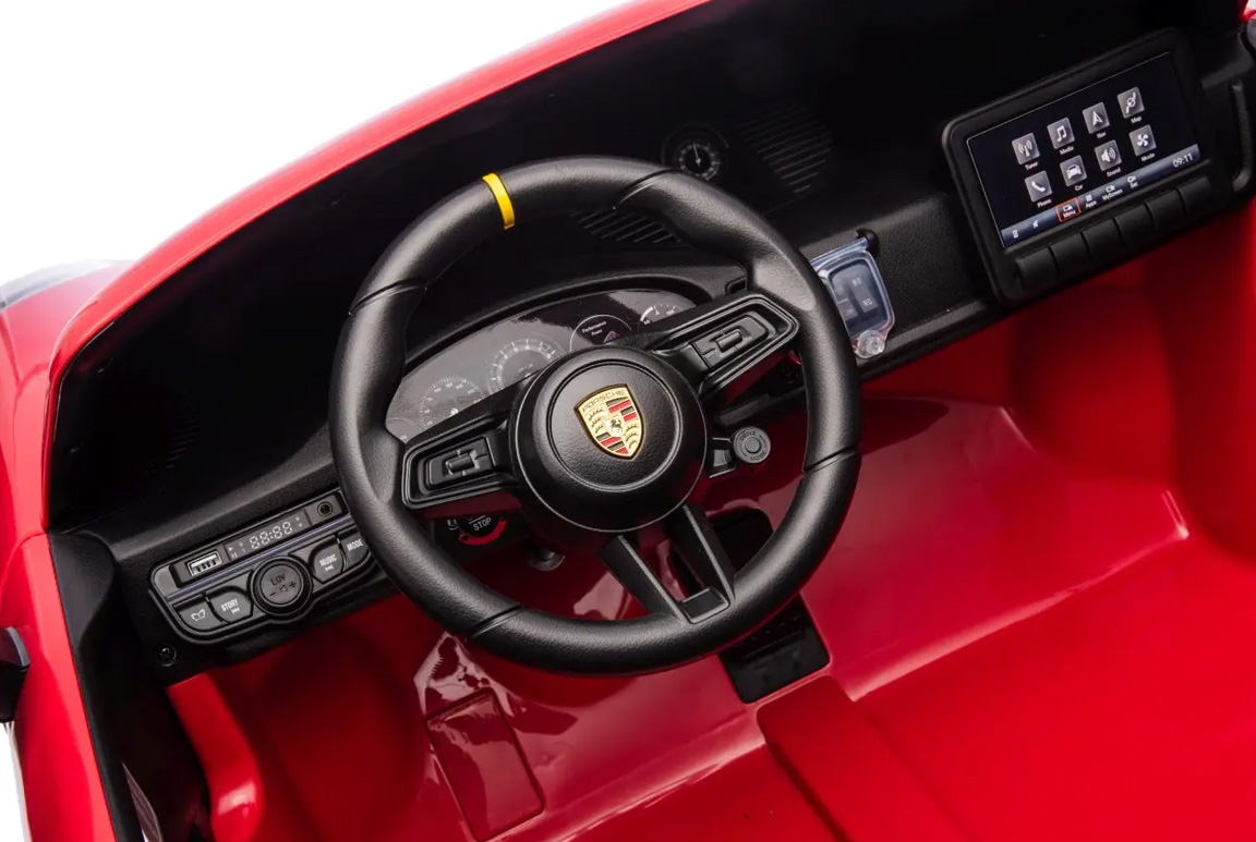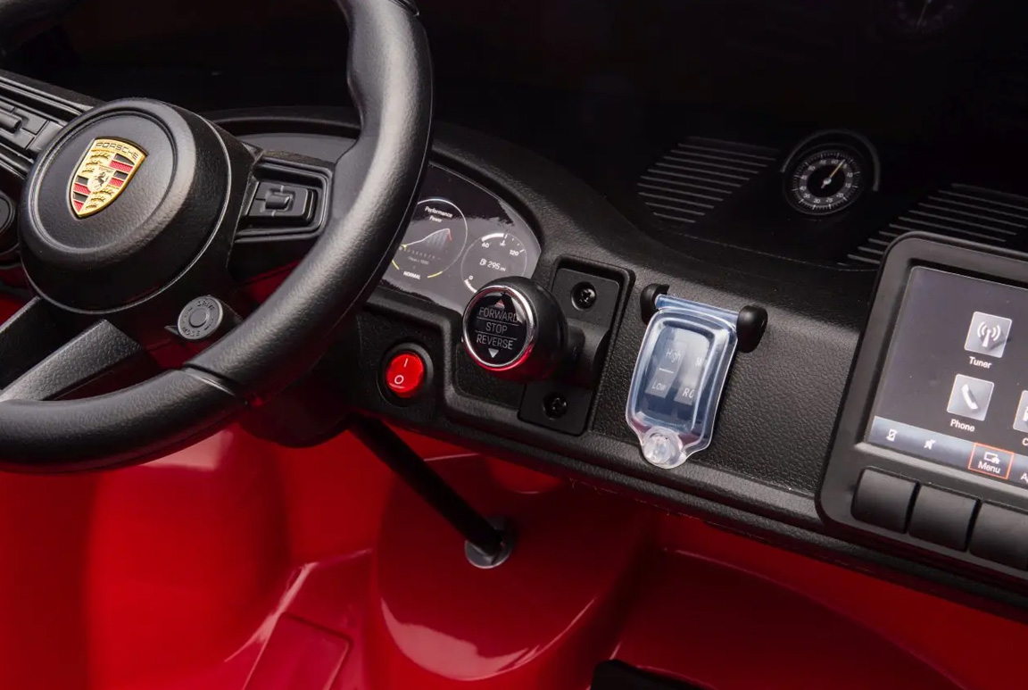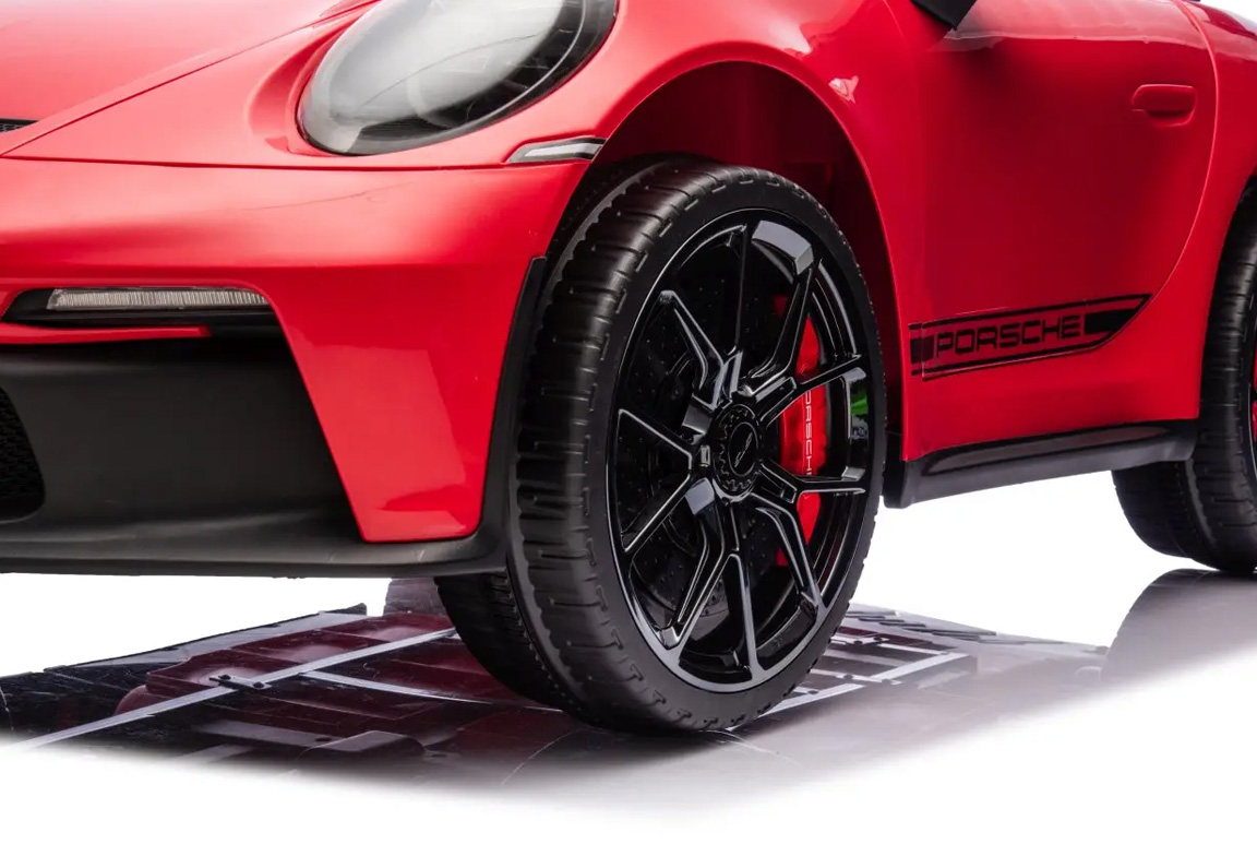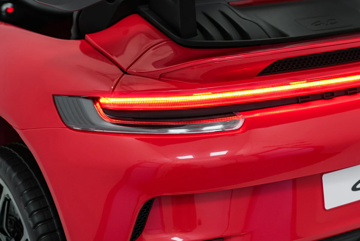 Vores røde Porsche 911 GT3 elbil til børn er ikke kun bygget til at levere spænding, men også til at sikre barnet og komfortabel køreoplevelse. Takket være den smarte soft-start funktion, accelererer elbilen jævnt og kontrolleret. Det betyder, at dit barn slipper for de pludselige ryk, som man kan opleve i nogle elbiler. Denne bløde start sørger for, at dit barn får en glidende og jævn køreoplevelse fra første sekund, uden ubehag i nakken – så de kan fokusere på at nyde turen uden bekymringer!
