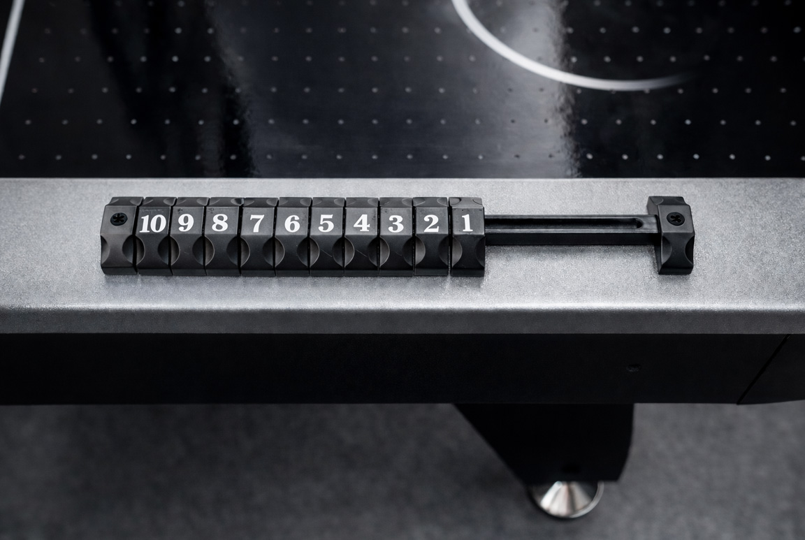 Den højglanslaminerede MDF-overflade giver ikke bare et flot og moderne udtryk – den er skabt til hastighed. Sammen med de solide rails og den stabile konstruktion sikrer den, at pucken reagerer præcist på hvert eneste slag. Her belønnes hurtige hænder, gode reflekser og den dér irriterende evne til altid at være ét skridt foran modstanderen.