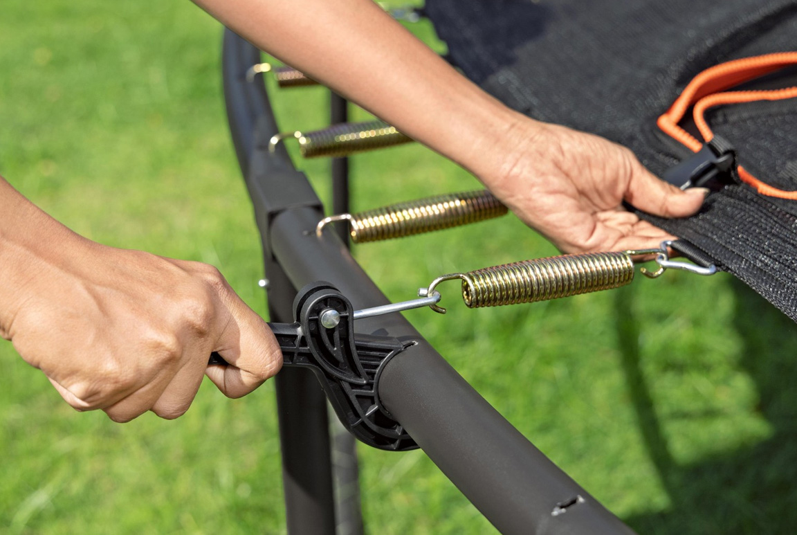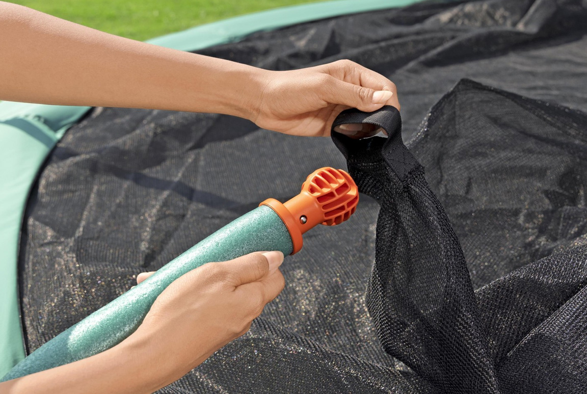 En god havetrampolin skal kunne mere end bare at levere sjove øjeblikke – den skal kunne holde til dem. Til de mange timer i solen, til vind og vejr, og til børn der hopper igen og igen uden at blive trætte. Bestway Xtreme Air er konstrueret i pulverlakeret galvaniseret stål, som effektivt beskytter rammen mod rust og korrosion. Sammen med UV-bestandige materialer i både springdug og net får du en trampolin til haven, der er skabt til at holde sig stærk og sikker – sæson efter sæson.