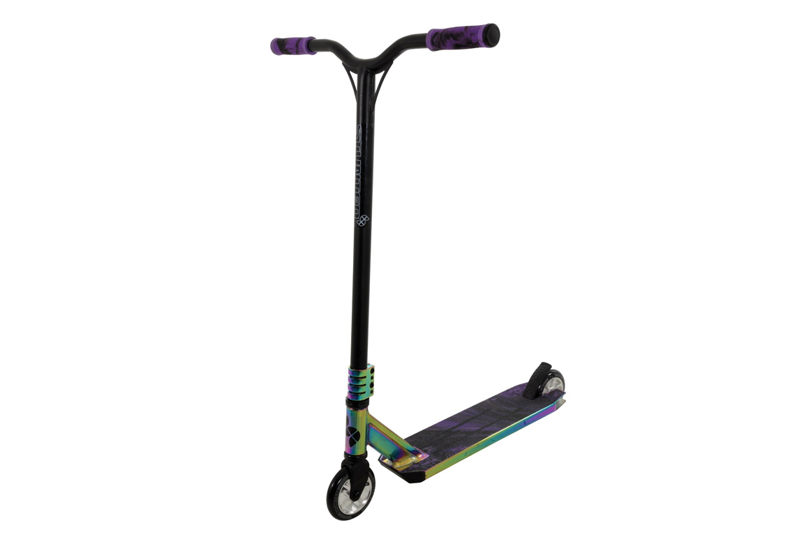 Vores Stunted Neo Chrome Trick Løbehjul fra MV Sports er ikke bare et flot syn med sit neochrome look og drypeffekt – det er en opgradering for den semi-øvede rytter, der er klar til flere udfordringer og vil perfektionere sine skills.