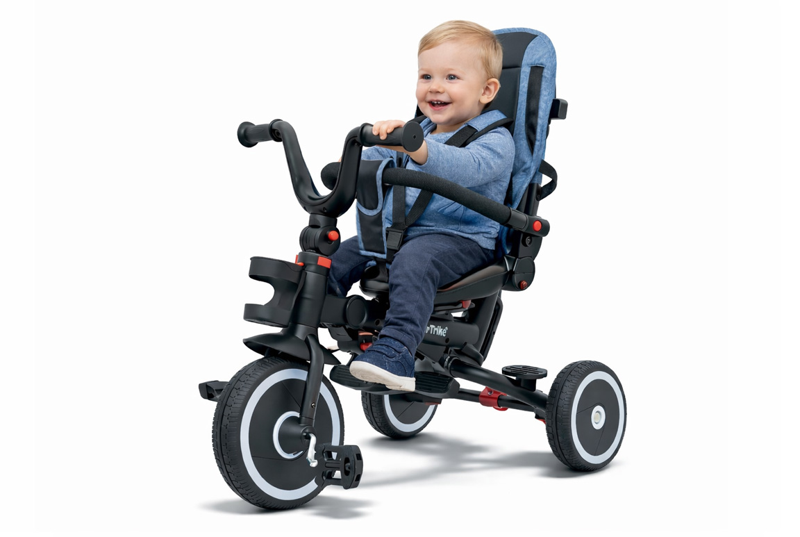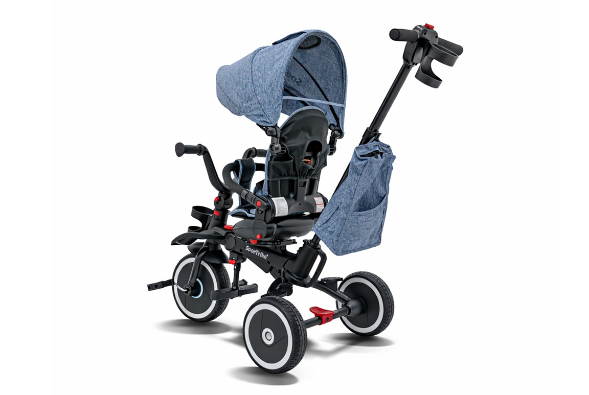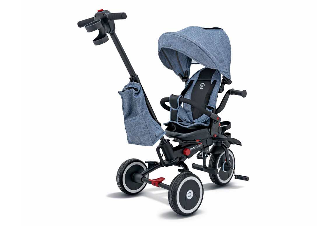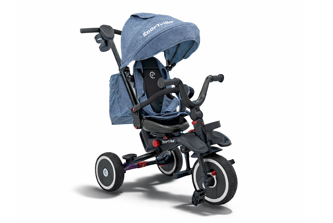 SporTrike Rider er en 3-i-1 trehjulet cykel med kaleche, som kan tilpasses barnets alder, energi og humør. Når barnet er klar til selv at træde, fungerer den som en klassisk trehjulet cykel, hvor junior styrer og tramper løs med stolt mine. Når benene bliver trætte – eller tempoet skal styres lidt – kan forældrene overtage kontrollen via den smarte styrepind bagpå, som gør det let at manøvrere sikkert rundt.