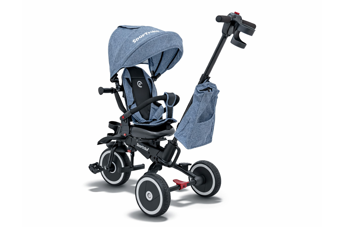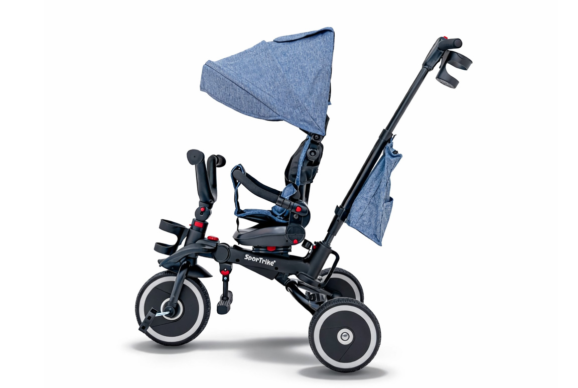 Blå Trehjulet cykel med kaleche til børn – 3-i-1 SporTrike Rider (1–5 år)