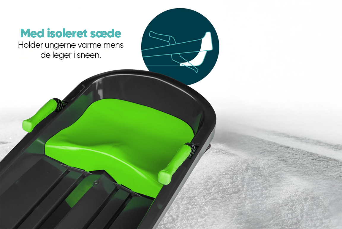 Det isolerede sæde er en gamechanger. Det beskytter effektivt mod kulde og sne, så bagdelen forbliver varm, selv efter gentagne ture. Mindre frys, mere fart – præcis som det skal være. Materialerne er valgt med ét formål: holdbarhed. Tron bobslæden er lavet til at klare gentagne ture, ujævnt terræn og vinterens lidt hårde behandling – uden at revne, knække eller give op. Det er en bobslæde, der kan gå i arv i flere generationer.