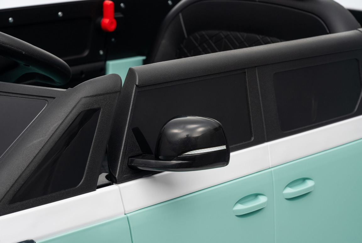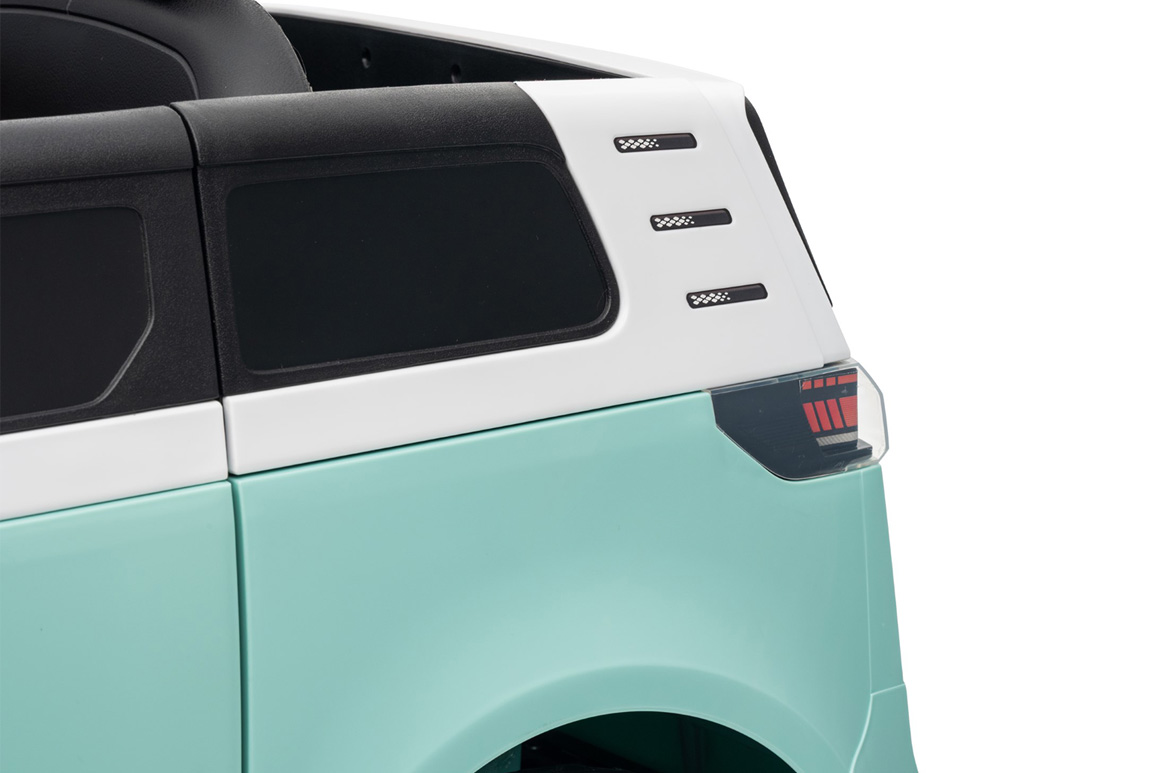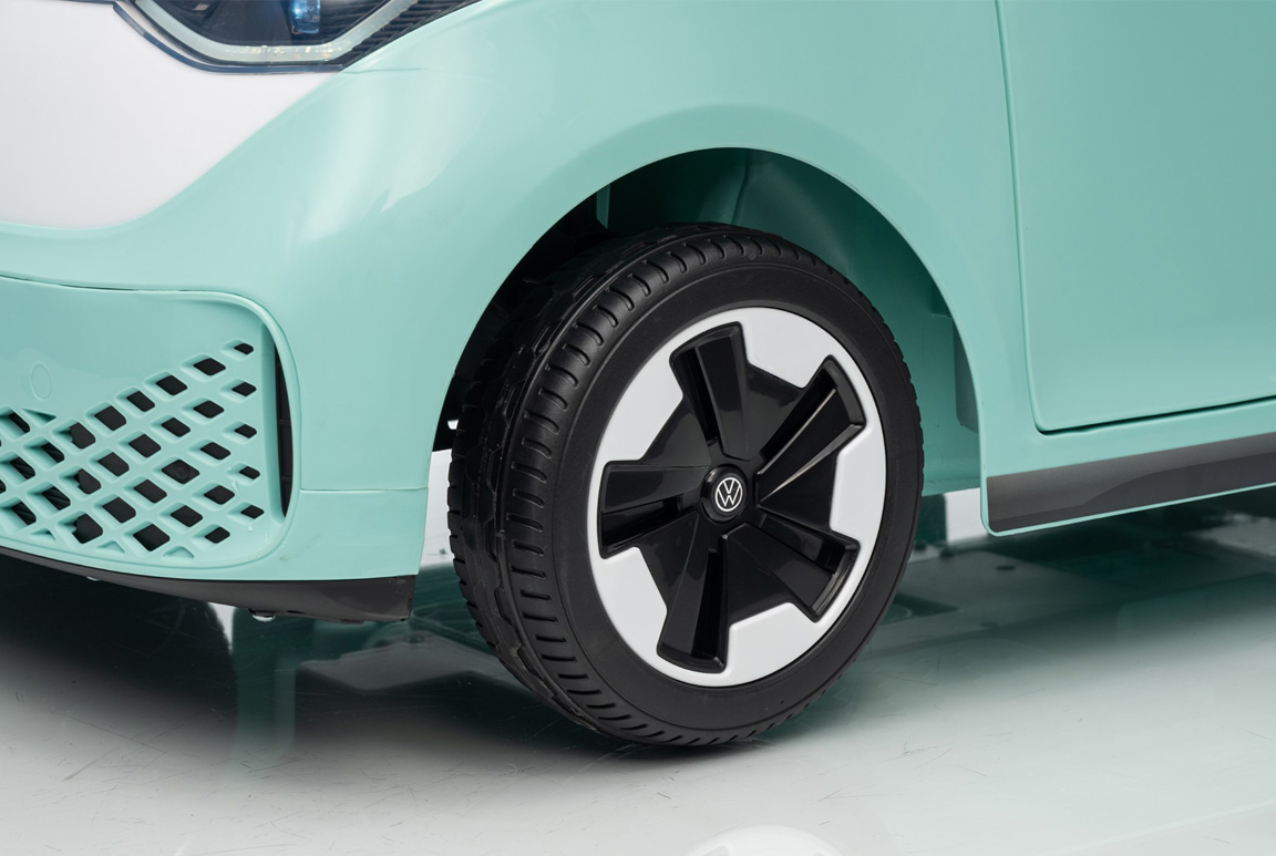 Det er de små detaljer, der gør forskellen – og denne mini-Buzz skuffer ikke. EVA-gummihjulene sikrer bedre vejgreb og en mere støjsvag kørsel sammenlignet med hårde plastikdæk. Det betyder også, at bilen lettere klarer små ujævnheder og kan bruges både ude og inde.